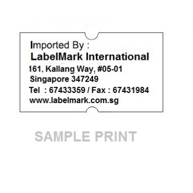 22×12 – IMPORTED BY – 1C – 100 rolls ( $ 3.00 per roll) = S$ 300.00, 22×12 – IMPORTED BY – 1C – 300 rolls + 1 FREE Labeller ( S$ 1.60 per roll) = S$ 480.00, 22×12 – IMPORTED BY – 1C – 500 rolls + 1 FREE Labeller ( S$ 1.45 per roll) = S$ 725.00